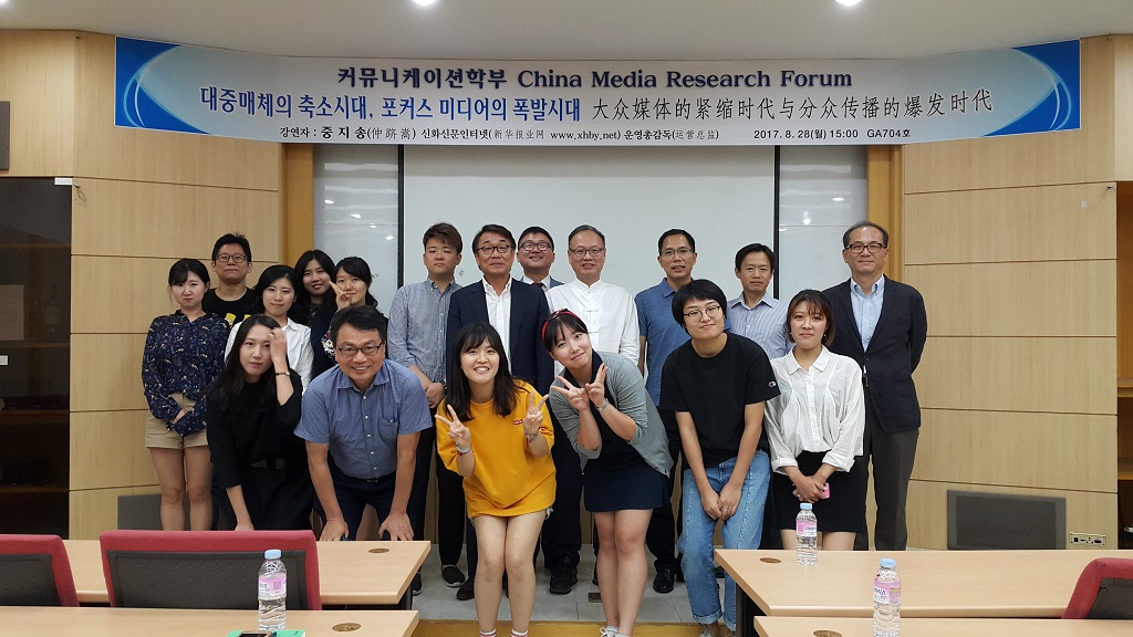 커뮤니케이션학부가 8월 28일 오후 3시 가브리엘관 704호에서 ‘차이나 미디어 리서치 포럼’을 개최했습니다. 2018 년 커뮤니케이션학부 50주년을 기념하기 위해 마련된 행사였습니다. 이날 중지송 중국 강소성 신화신문인터넷 운영총감독이 ‘대중매체의 축소시대, 포커스 미디어의 폭발시대’라는 주제로 강연하고, 한국과 중국 미디어의 차이에 대해 토론했다. 또, 자오위쿤 전 워싱턴 미주시보 사장이 2001년 미국 9.11 테러 당시 뉴욕 현지 기자로 활동했던 경험을 발표하고, 참석자들과 묻고 답하는 시간을 가졌습니다.