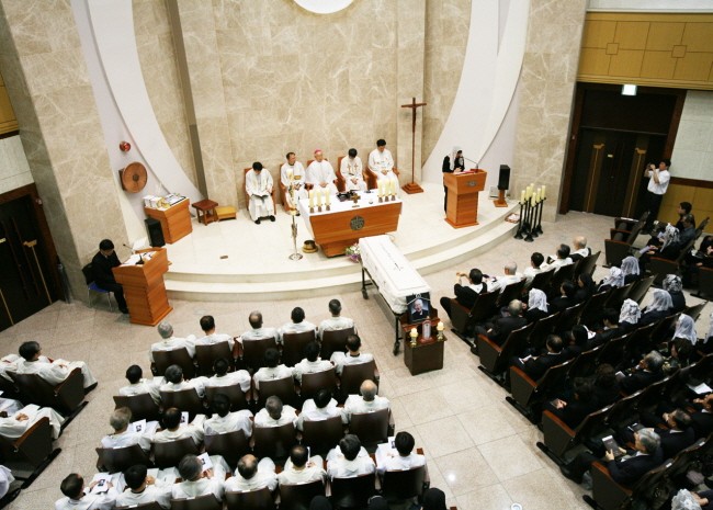이어 유가족과 사제들은 촛불을 들고 관 주위에 모여서 신부님께 마지막 인사를 건넸고, 신원식 관구장은 성수를 뿌린 뒤 분향했습니다. 이윽고 고인의 영원한 안식을 염원한 운구 행렬은 장지인 용인 천주교 공원묘지로 향했습니다.
