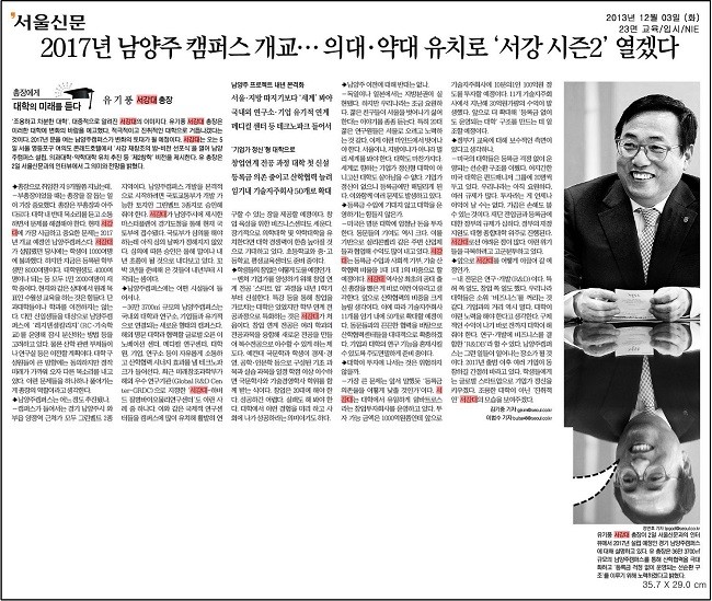 [서울신문] 2017년 남양주 캠퍼스 개교... 의대, 약대 유치로 '서강 시즌2' 열겠다