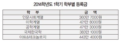 2014학년도 1학기 학부 등록금이 2013학년도와 같은 금액으로 동결됐다. 지난 겨울방학 동안 다섯 차례에 걸쳐 개최된 등록금심의위원회 결과에 따른 것이다. 모교와 학생 대표는 각각 등록금 3.8% 인 상안과 3% 인하안을 주장해오다가 동결로 종결됐다.