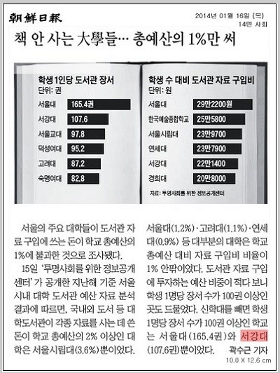 [조선일보] 책 안 사는 대학들... 총예산의 1%만