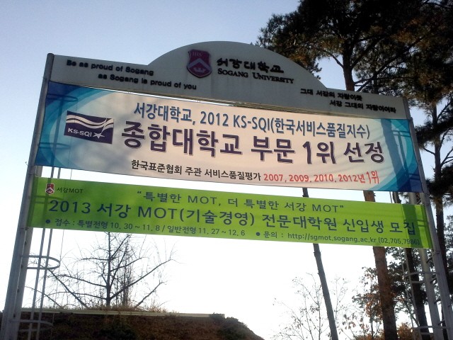 모교가 2012년 KS-SQI(Korean Standard-Service Quality Index, 한국서비스품질지수) 종합대학교부문 1위에 선정됐습니다. 2009년과 2010년 1위 선정 이후 2년 만에 이룬 쾌거입니다.