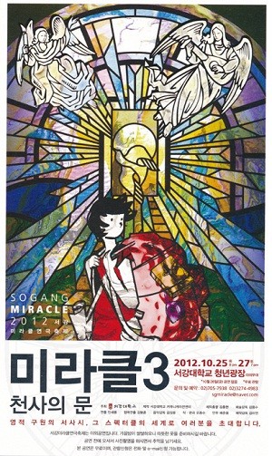 2010년 개교 50주년 기념 공연으로 첫 선을 보인 이후 ‘서강만이 할 수 있는, 가장 서강다운 공연’으로 자리 잡은 ‘서강미라클연극축제(이하 미라클)’ 세번째 무대가 10월 25일 오후 8시와 27일 오후 7시에 열립니다. ‘천사의 문’이란 부제가 붙은 이번 미라클은 더욱 새롭고 발전된 모습으로 선보일 예정입니다.
