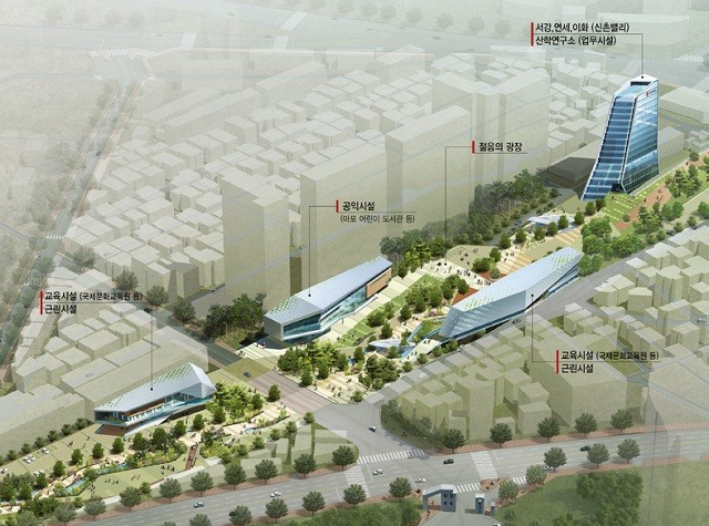 또, 서강역 역사가 지하에 마련됨에 따라 지상 부지 용도에 대한 논의도 진행중 입니다. 특히 철도공단이 기존에 약속한 공원조성을 철회하고, 입찰을 통해 도시형생활주택건설을 내세운 ㈜신영ㆍ쌍용건설 컨소시엄을 사업주관자 후보자로 선정해 논란이 일고 있습니다. 모교는 국제문화교육원, 노인정, 어린이도서관, 3·4번 출입구 건설 등을 내세워 입찰에 참여했지만 탈락하고 말았습니다(사진 참조).