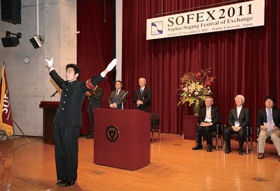 31일 오후 3시 죠치대 강당에서 열린 개회식에서 타다시 타키자와 죠치대 총장은 “두 학교 학생들이 서로 활발히 교류하면 좋겠다”라며 “나아가 한일 교류 밑바탕이 되길 바란다”라고 환영했다. 이사장 유시찬 신부는 “학생들이 서로 아름다운 인연을 잘 키워나갈 것이라 믿는다”라고 화답했다. 이어 각 학교 학생대표가 서로에게 축하 메시지를 전달했고, 교가 합창 이후 오리엔테이션과 캠퍼스 투어에 나섰다. 캠퍼스 안내는 죠치대에서 교환학생 자격으로 공부하는 한국 학생 위주로 구성된 자원봉사단이 도맡았다. ‘SOFEX 2011’ 행사는 죠치대 가을 축제 기간에 펼쳐진 까닭에 재학생들은 일본 대학문화를 접하는 재미도 누렸다. 전통 다도 체험을 하는가 하면, 타코야끼와 볶음우동을 맛보며 가깝지만 다른 일본을 한층 깊이 느낄 수 있었다.