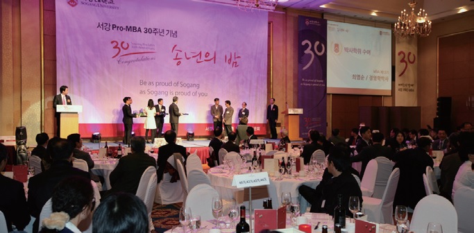 경영전문대학원(이하 MBA) 개원 30주년을 축하하는 ‘2010년 MBA 총동문회 송년의 밤’ 행사가 12월 3일 오후 6시 그랜드힐튼 호텔 2층 그랜드볼룸에서 개최됐다. MBA 동문회와 재학 원우회가 합동으로 준비한 행사에는 MBA 1기 동문부터 60기 재학생에 이르기까지 300여명이 대거 참석해 성황을 이뤘다. 특히, MBA역사를 상징하는 역대 MBA원장, 역대 동문회장, 1기생 등이 참여해 특별함을 더했다.