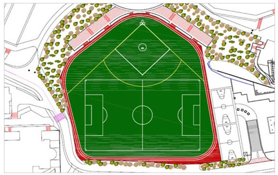 위의 평면도에서 볼 수 있듯이 축구는 물론 야구까지 넉넉하게 진행할 수 있는 인조잔디구장이 조성됨으로서, 평소 운동장에서 운동을 즐기는 재학생들에게 큰 선물이 되리라 예상됩니다.