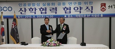 ‘포스코-서강대학교 인공광합성 실용화 공동연구를 위한 산학협력 협약식’이 8월 30일 오후 2시 30분 마태오관 9층 리셉션 홀에서 열렸다. 이사장 유시찬 신부, 이종욱(66 사학) 총장, 정준양 포스코 회장, 송영만(74 정외) 총동문회 부회장, 이의현(경영 37기) 경영전문대학원 동문회장, 김창경 교육과학기술부 제 2차관, 이현구 과학기술특별보좌관 등 100여 명이 참석해 뜻깊은 협약식을 축하했다. 포스코와 맺은 이번 협약으로 과학관 별관과 현재 공사 중인 국제인문관 사이에 인공광합성연구센터가 지상 9층, 지하 2층, 총 면적 7,030.97㎡(2,126.87평) 규모로 건립된다. 2012년 8월 완공이 목표다.