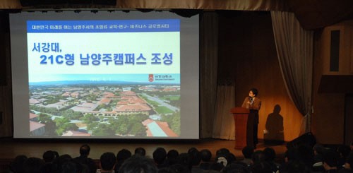 남양주시 양정동과 와부읍 율석리 일대에 들어설 예정인 남양주캠퍼스 즉 서강 GERB캠퍼스(Global, Education, Research, Business) 조성 대외설명회가 4월 1일 남양주시청 다산홀에서 열렸습니다. 설명회 대상이 제2캠퍼스 조성에 직간접적 지원을 맡은 남양주시청 공무원 400명이었기에 특히 눈길을 붙잡았습니다. 모교는 설명회에서 서강을 2013년부터 2020년까지 2단계로 나눠 옮기되 이전 규모는 5000명 이상이며 지역 동반발전 모델을 추구한다고 밝혔습니다.