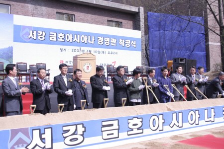 4월 10일 오후 2시 모교 마태오관 앞에서 서강 금호아시아나 경영관(제2경영관) 착공식이 열렸다. 임채운 경영전문대학원장은 “제2경영관 건립은 경영전문대학원이 세계 속의 서강으로 발돋움하기 위한 결정적 계기가 될 것” 이라고 밝혔다. 착공식에는 박홍 재단이사장, 손병두 총장, 조규만 서울대교구 주교, 신영섭 마포구청장, 오남수 금호아시아나그룹 전략경영 본부 사장 등 내외빈이 참석했다.