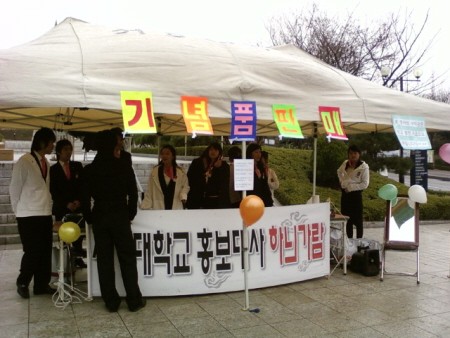 학교발전기금을 위한 ‘하늬가람’ 기념품판매전 모교 학생홍보대사 ‘하늬가람’ 의 기념품 판매전이 4월 2일부터 4일까지 열렸다. 정문, 도서관라운지, K관 앞 등에서 열린 이날 행사에서 학교로고가 들어간 지퍼파일, 후드티, 핸드폰줄 등을 판매했다. 수익금 전액은 ‘학교발전기금’ 으로 쓰인다.