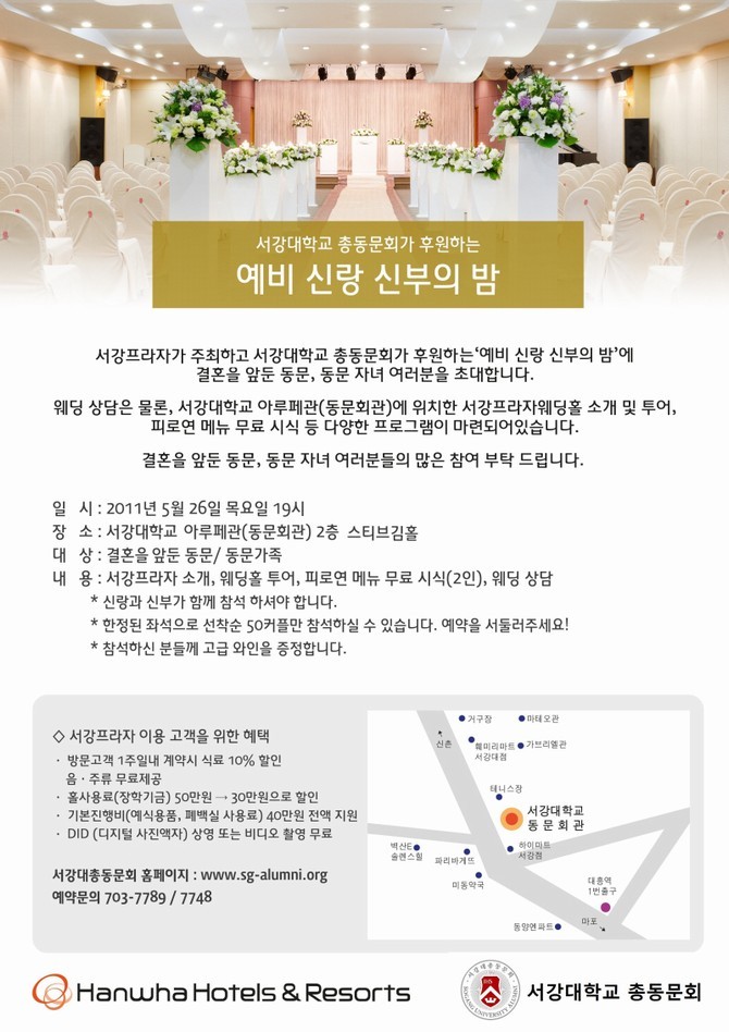 '예비 신랑 신부의 밤'에 결혼을 앞둔 동문 / 동문 가족을 초대합니다 페이지 정보 작성자 관리자 작성일11-05-11 15:45 조회12,515회 댓글0건 관련링크 프린트 목록 본문 댓글목록 등록된 댓글이 없습니다. 프린트 목록