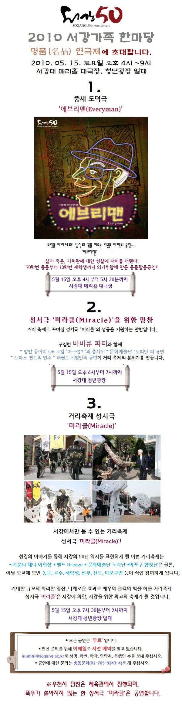 2010 서강가족 한마당 '명품 연극제' 초대 페이지 정보 작성자 관리자 작성일10-05-04 16:44 조회11,888회 댓글0건 관련링크 프린트 목록 본문 2010 서강가족 한마당 '명품 연극제'에 초대합니다! 댓글목록 등록된 댓글이 없습니다. 프린트 목록