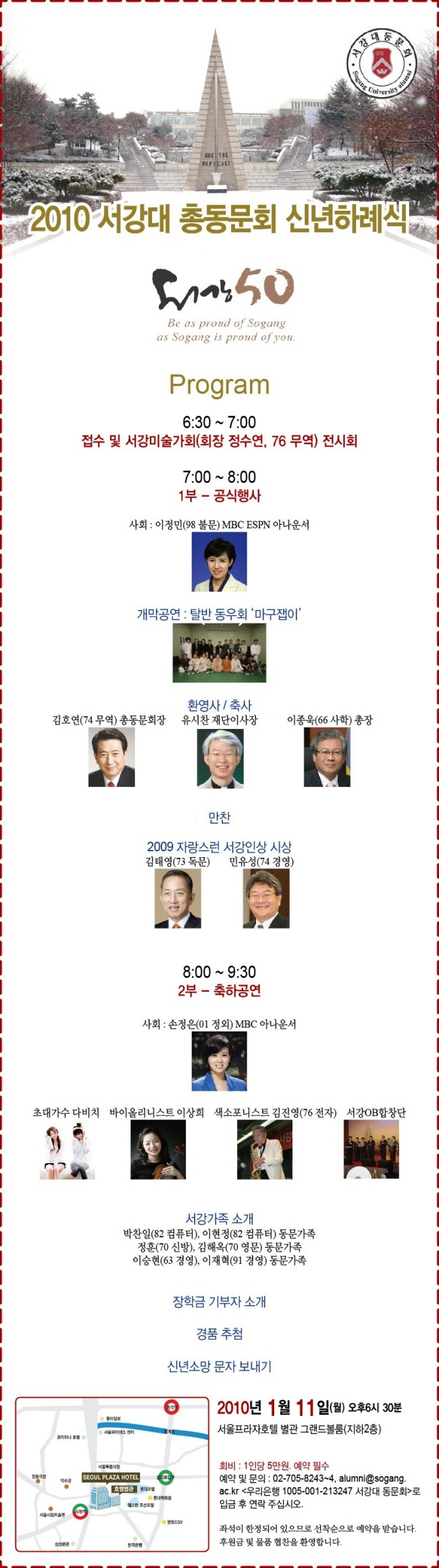 2010 서강대 총동문회 신년하례식이 열립니다 페이지 정보 작성자 관리자 작성일09-12-29 15:42 조회11,809회 댓글0건 관련링크 프린트 목록 본문 ? 댓글목록 등록된 댓글이 없습니다. 프린트 목록