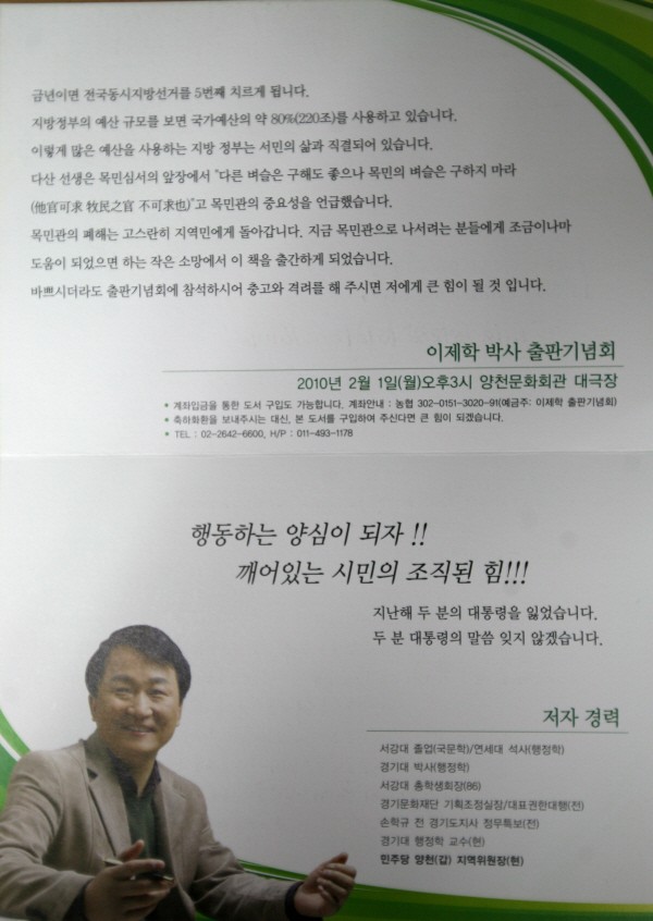 - 저서 <지역이 살아야 나라가 산다 - 로컬 거버넌스와 목민관>