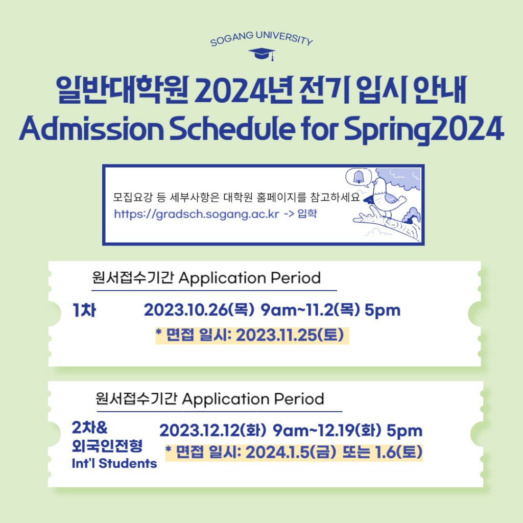 ※ 자세한 내용은 서강대학교 일반대학원 홈페이지(바로가기 클릭)에서 확인하실 수 있습니다.