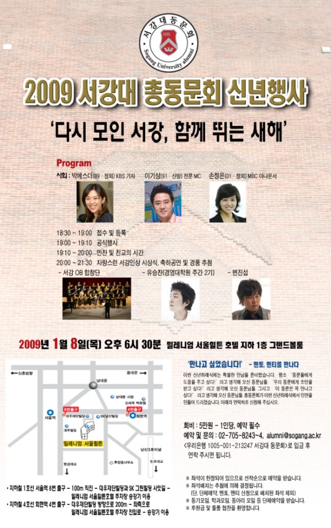 2009 서강대 총 동문회 신년 행사에서 ‘My Mentor’를 만나보세요!