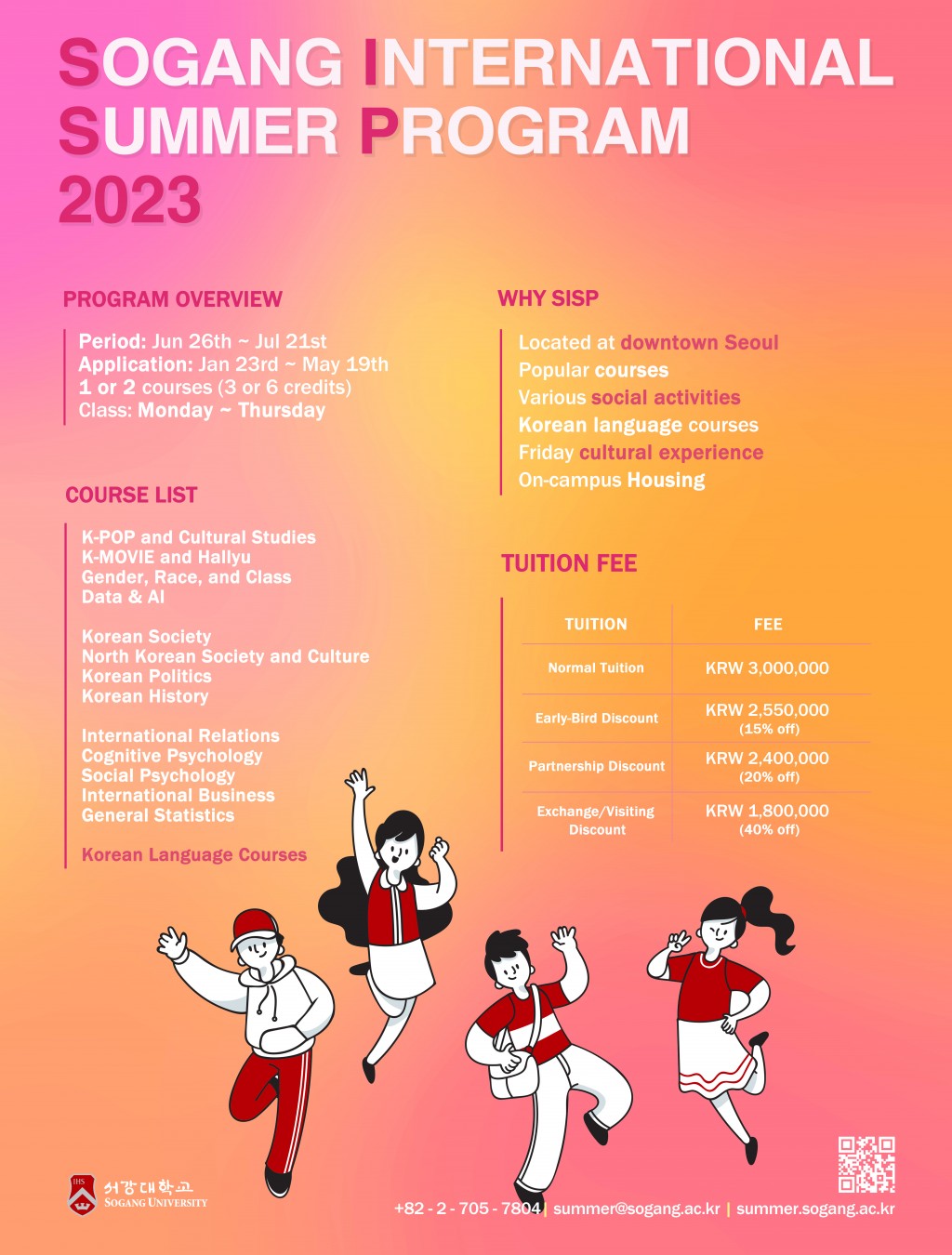 - 문의처: 서강대 국제팀 (+82-2-705-7804, summer@sogang.ac.kr)