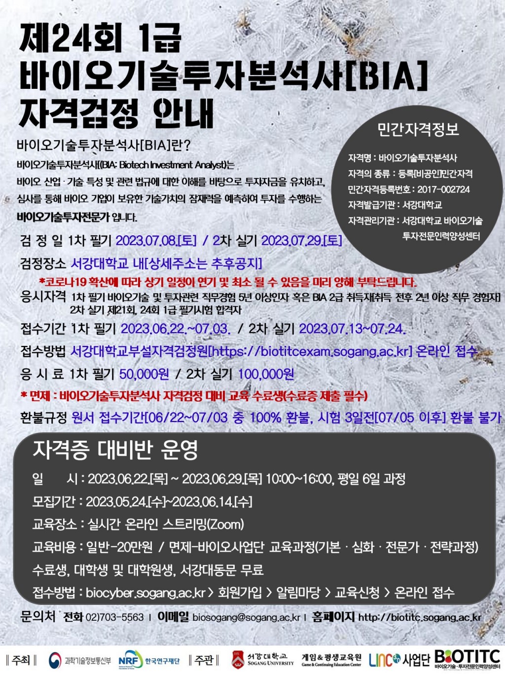 제24회 바이오기술투자분석사 1급 자격검정 대비 교육 및 시험 안내