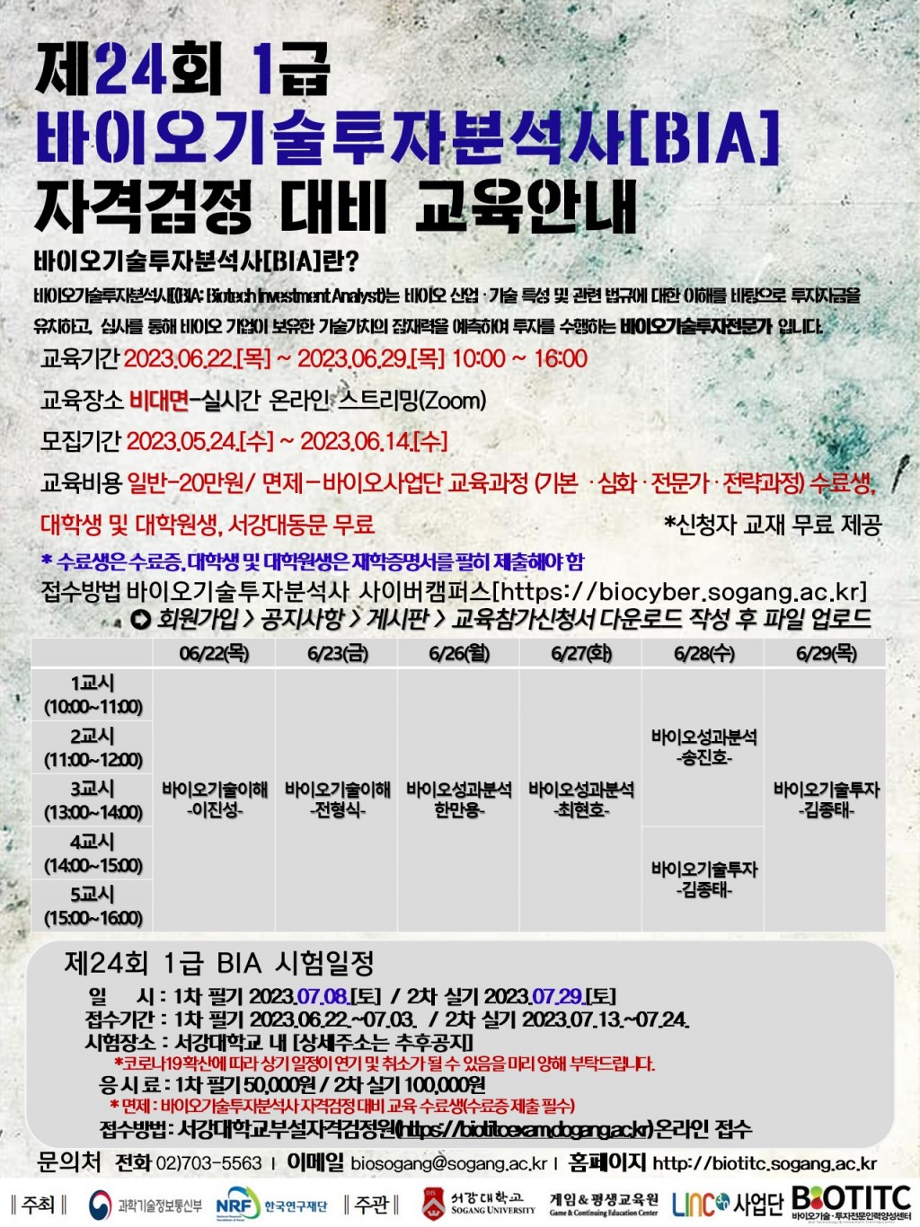 이에 제24회 바이오기술투자분석사(BIA) 1급 자격대비 교육 및 자격검정 일정이