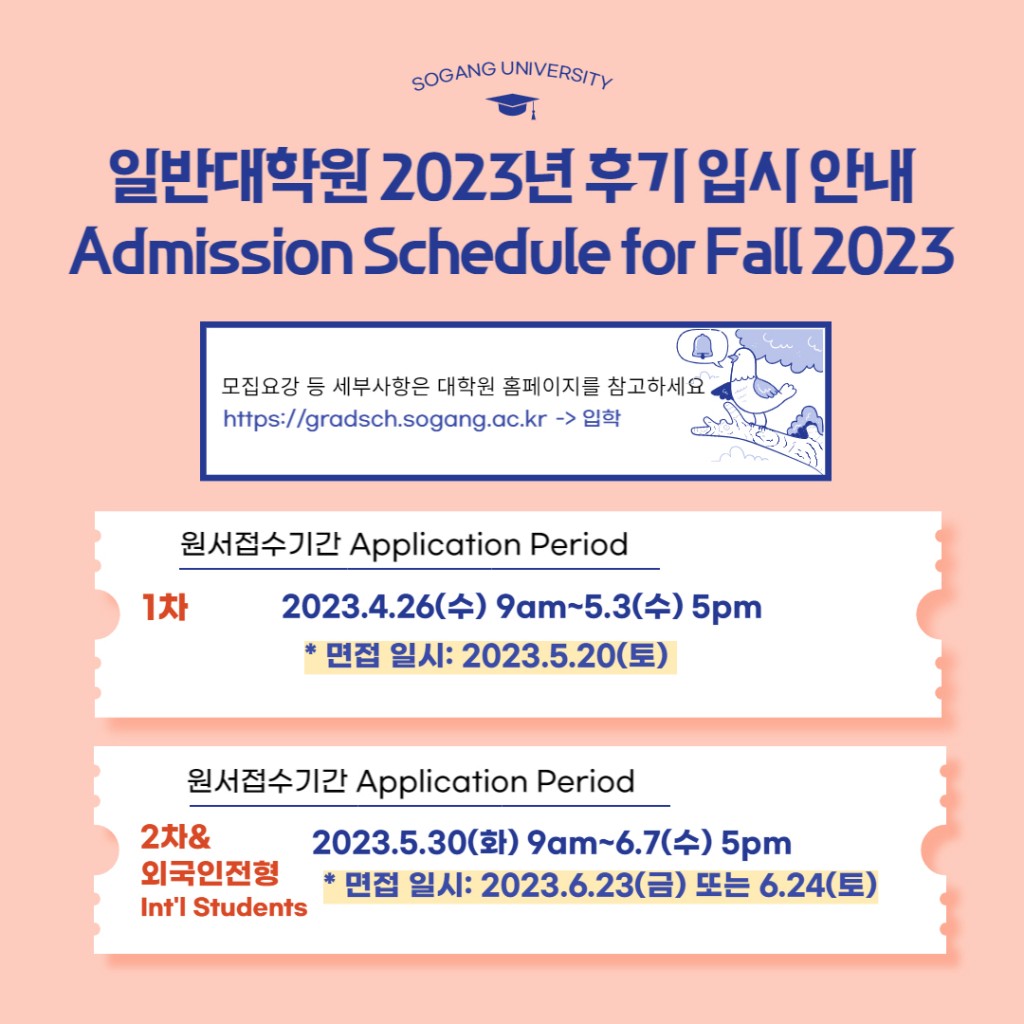 ※ 자세한 내용은 서강대학교 일반대학원 홈페이지(바로가기 클릭)에서 확인하실 수 있습니다.