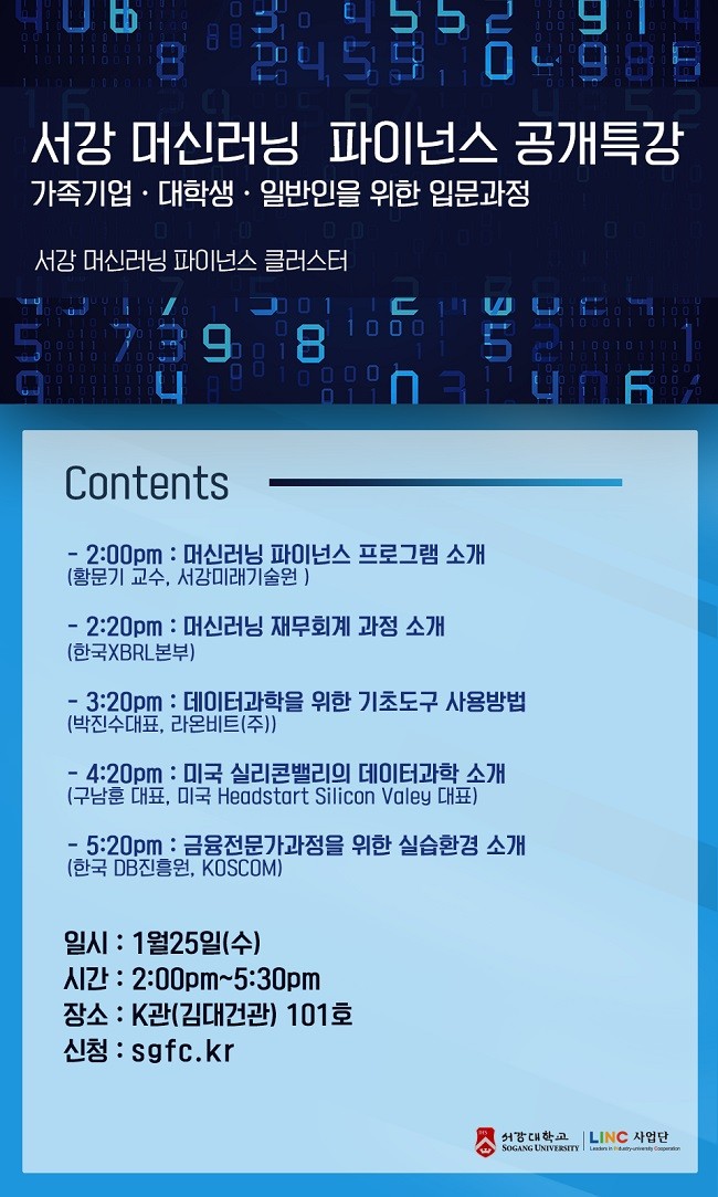서강 머신러닝 파이넌스 클러스터 공개특강 안내 > 알림마당