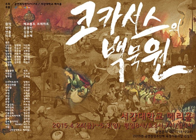 <노이즈 오프> <졸업> <만선> 등 다양한 공간 창조와 깊이 있는 작품해석으로 섬세한 연출을 펼치고 있는 김종석(85 신방, 용인대학교 뮤지컬연극학과교수) 동문이 공연제작센터(PCPA)의 2015년 신작으로 브레히트의 서사극 <코카서스의 백묵원>을 4월 24일 – 5월 3일 서강대학교 메리홀에서 공연합니다.