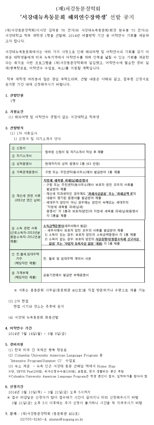 뉴욕동문회 해외연수장학생 선발 공지 > 알림마당
