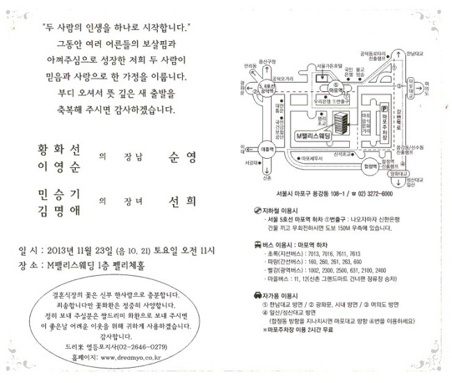 장소 : M팰리스웨딩 1층 펠리체홀(서울시 마포구 용강동 108-1)